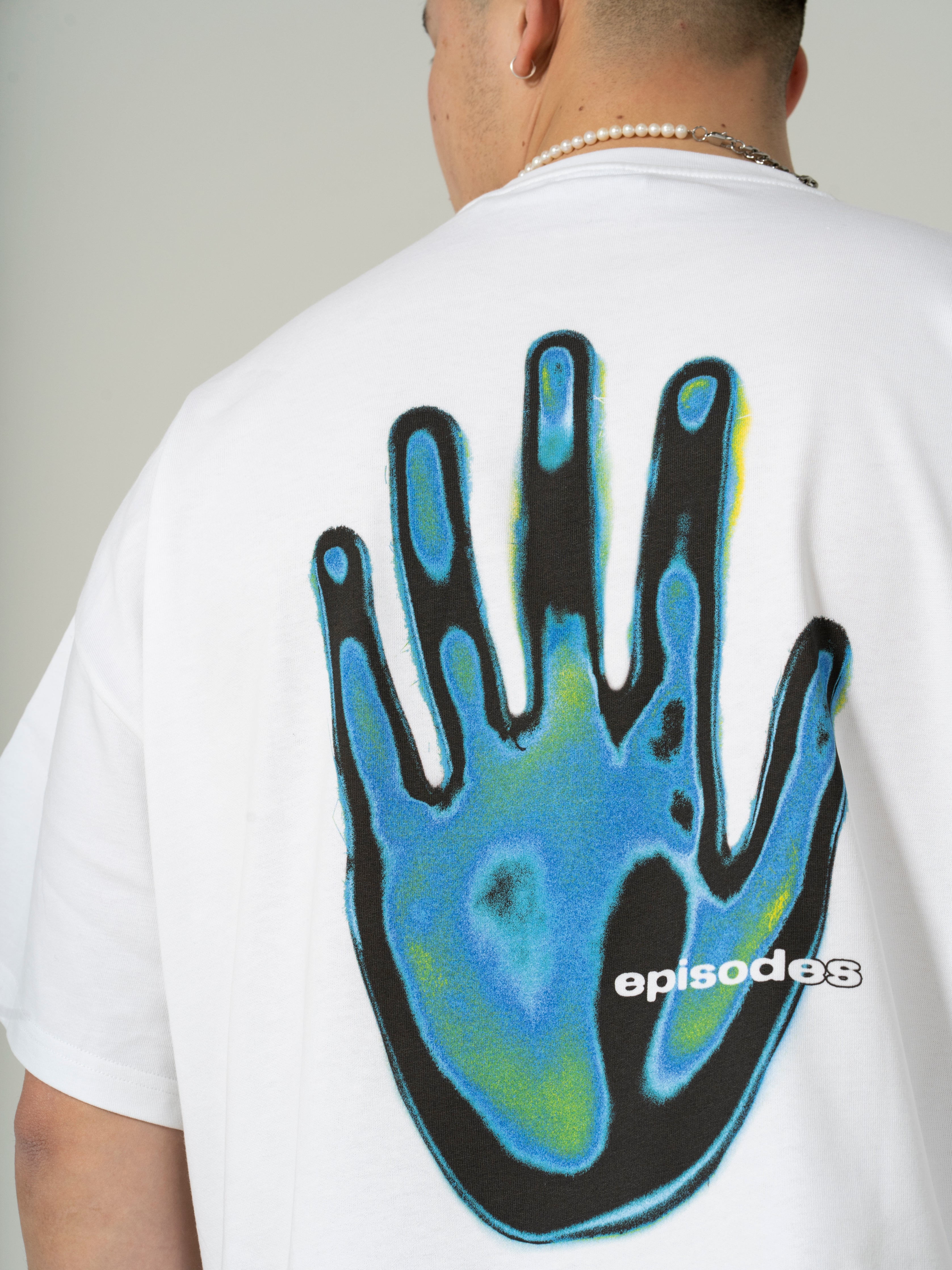 Hand Print Boxy T designed in collaboration with British Artist Charles Greenland Jenkins @cg.jenkins. Part of Episode 2 - The Human Identity Collection. Ultra-High-Definition Print on a Premium Quality 100% Cotton T-Shirt.