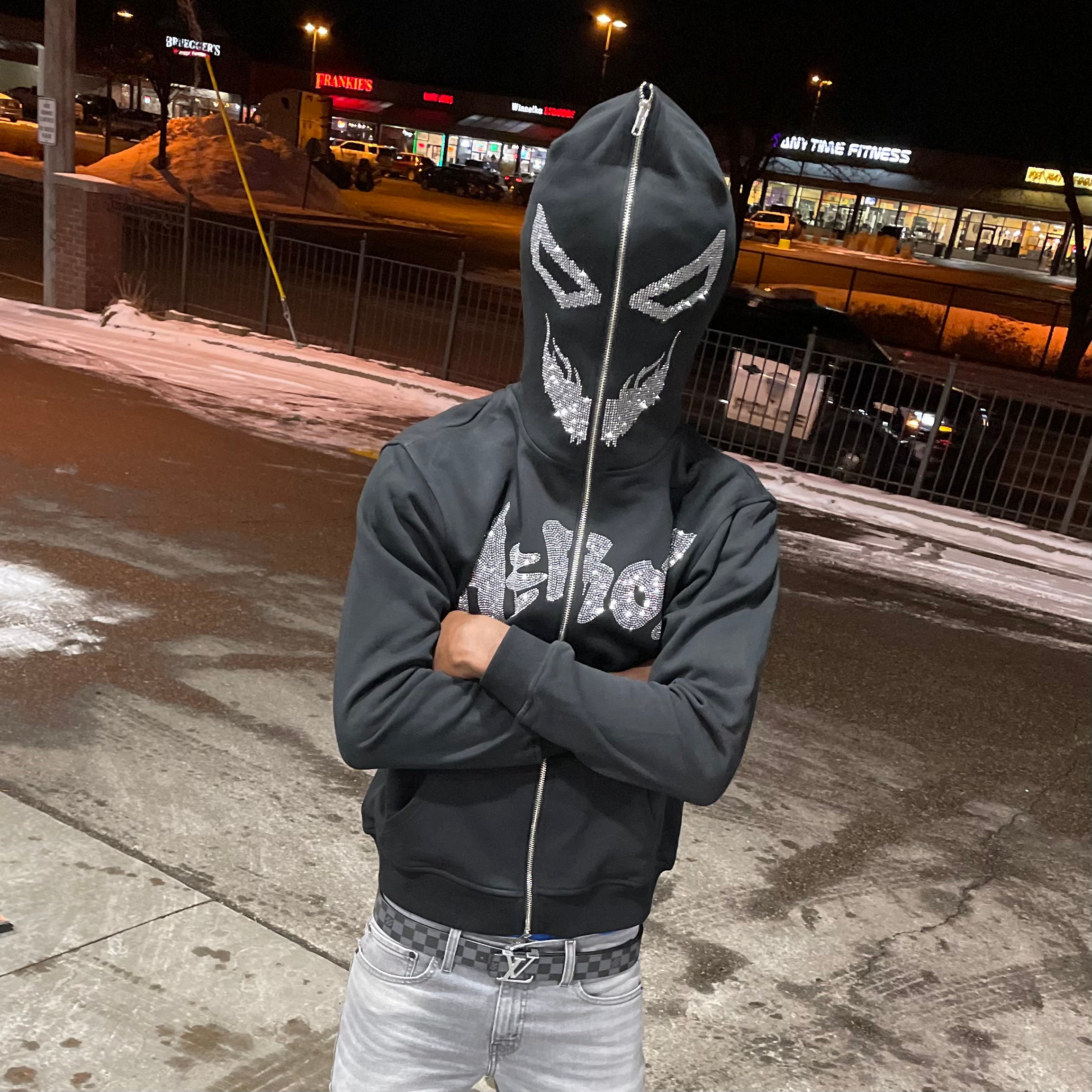 Black Rhinestone Full Zip