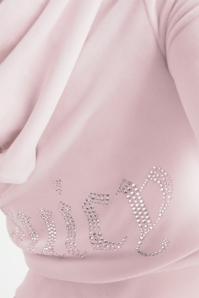 Our signature Y2K bedazzled hoodie steps above the rest with its iconic gothic "J" pull zipper, side pockets, and thumbholes.