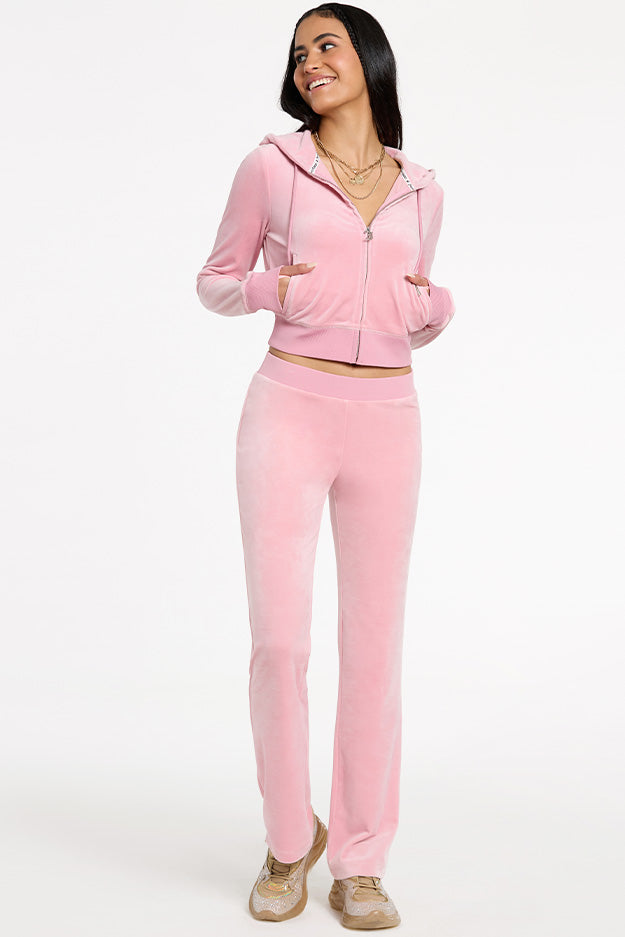 Our iconic Y2K bling track pant is back! Details include a ribbed elastic waistband and bling logo that covers your assets. Set the vibe by pairing with your choice of matching jacket.