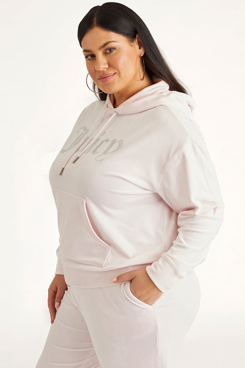 In a longer length made for cocooning, our luxe velour bling logo front hoodie features a kangaroo pocket, relaxed drop shoulders, and JC-stamped drawstring hardware at the hood. This is a laid-back style you need in your life