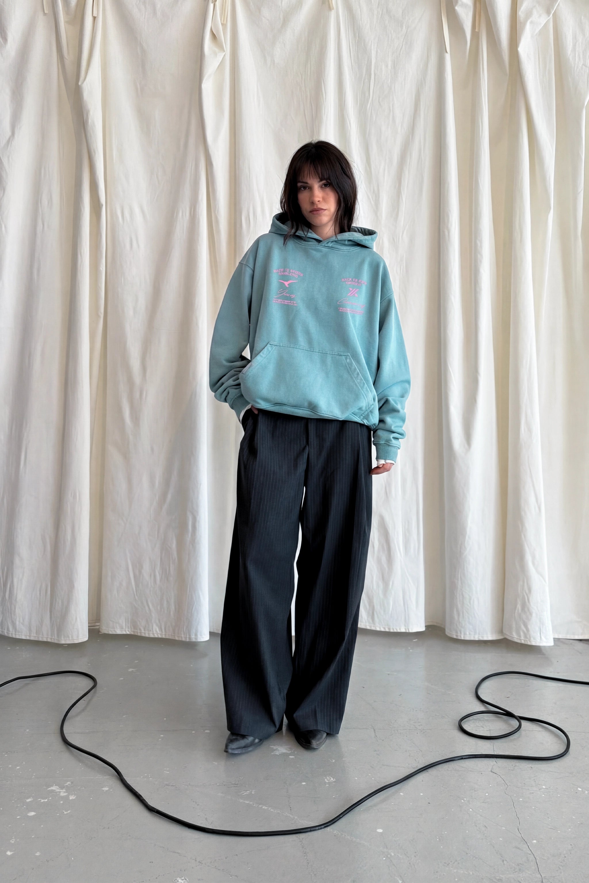 Introducing the Genesis hoodie in turquoise, a piece reborn from the idea of constant evolution. From the dunes to the streets, it's crafted with elevated detailing and refined materials—made to move through every terrain with intention.