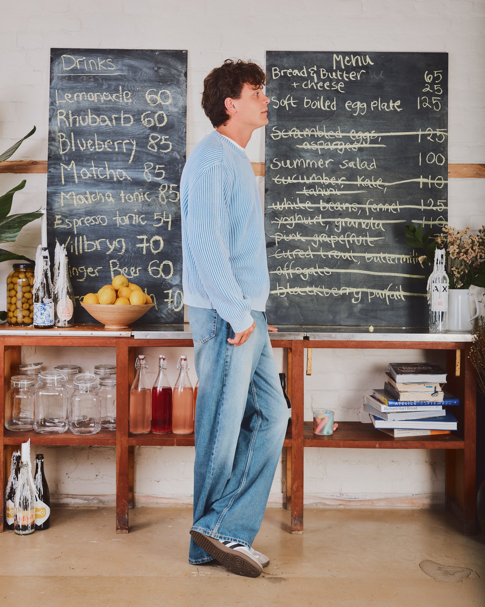 The Broken Oslo knitwear is crafted from 100% cotton, treated with an acid wash to create a vintage two-tone finish. Cut in a slightly loose fit, it's finished with a custom Broken Oslo label, zigzag-stitched onto the back.