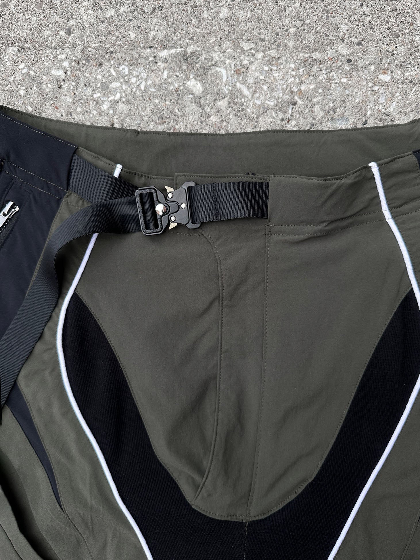 With no side seams and stretch panels at the inner crotch they are easy to move in. We also added a buckle closure at the waist, and velcro ankle cuffs for adjustable leg opening so you can adjust the fit however you want.