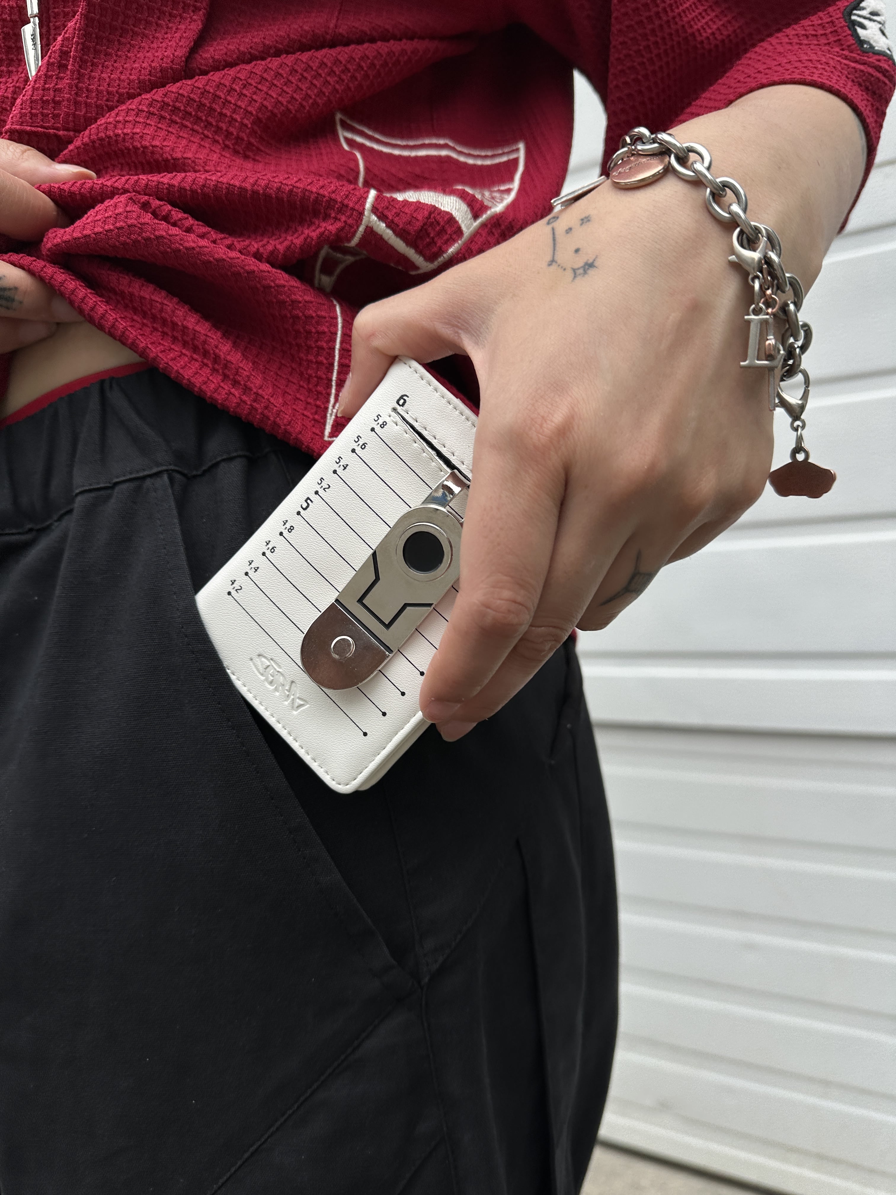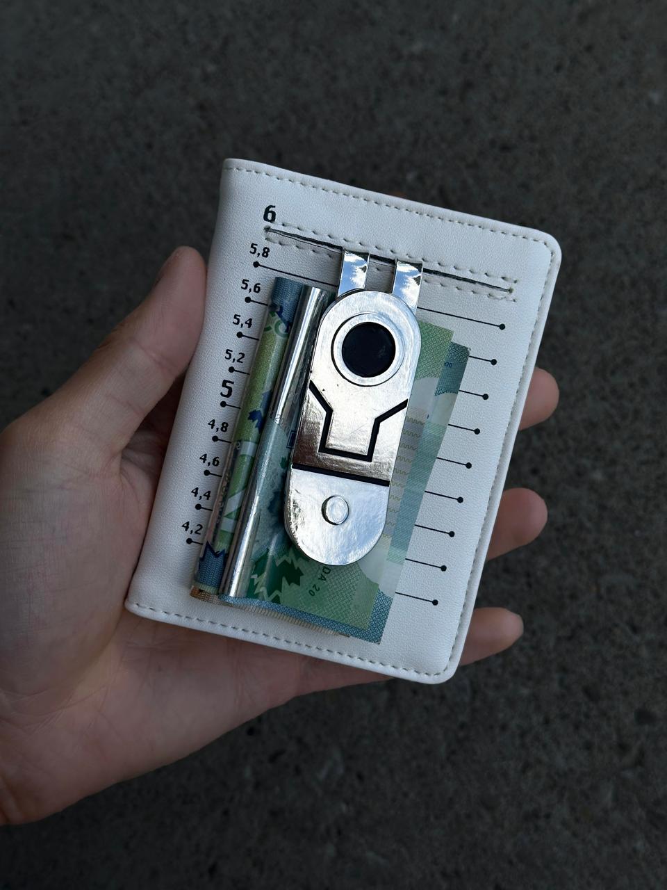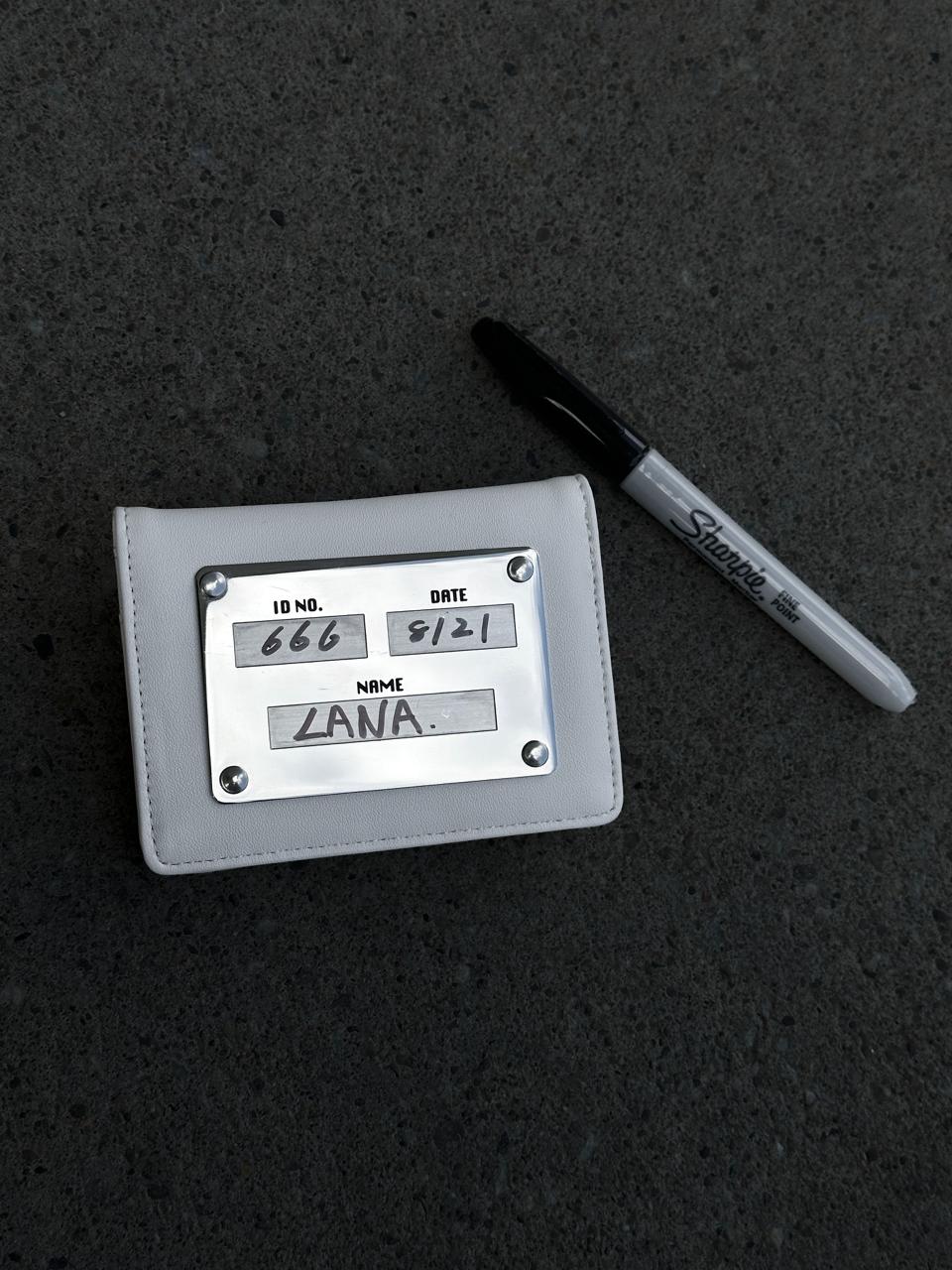 This wallet is made of vegan leather. We added the metal clip so you can attach cash to it. You can also customize the wallet to your liking with the metal plate on the other side featuring "NAME", "DATE", and "ID NO." fields to write your information with a marker.