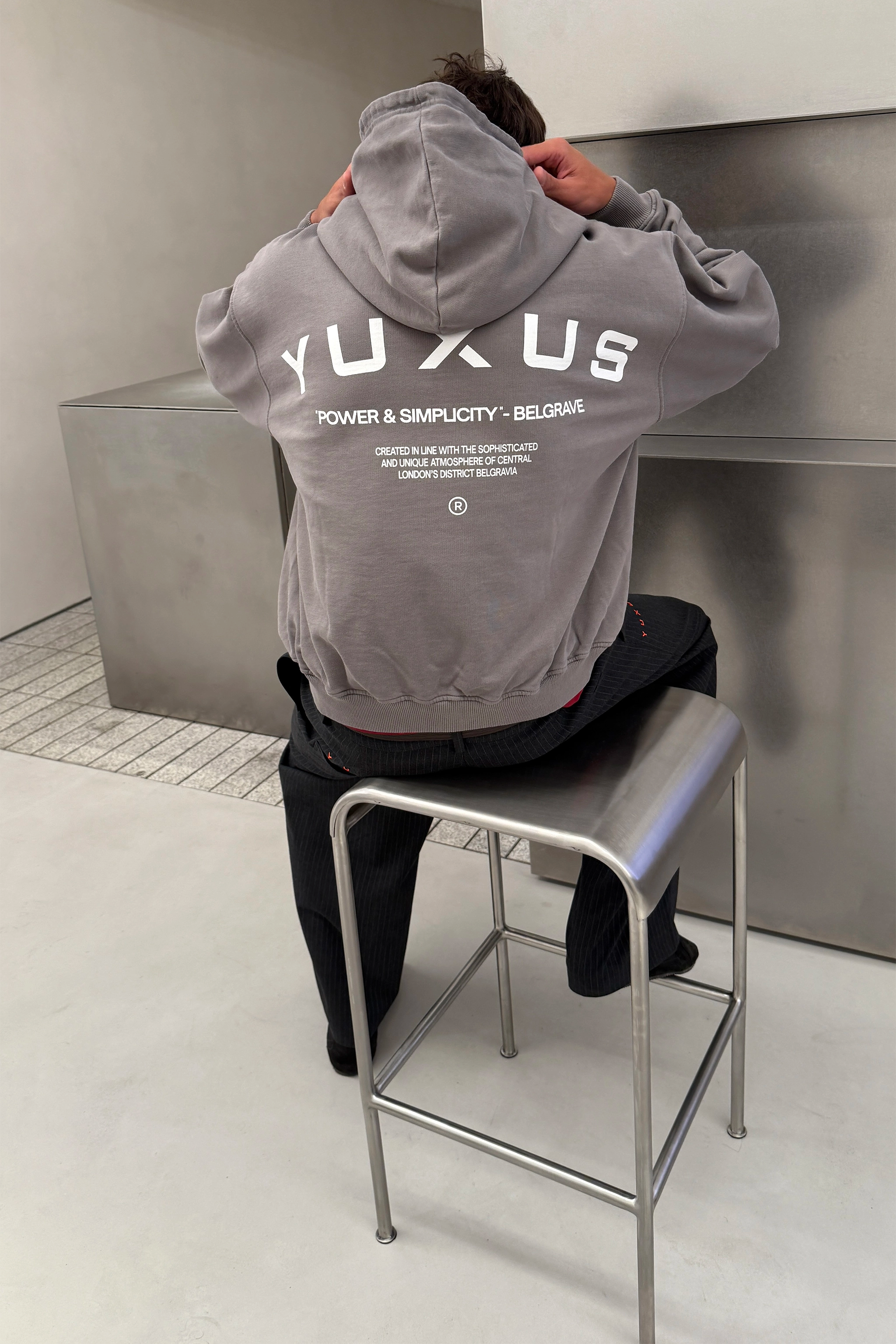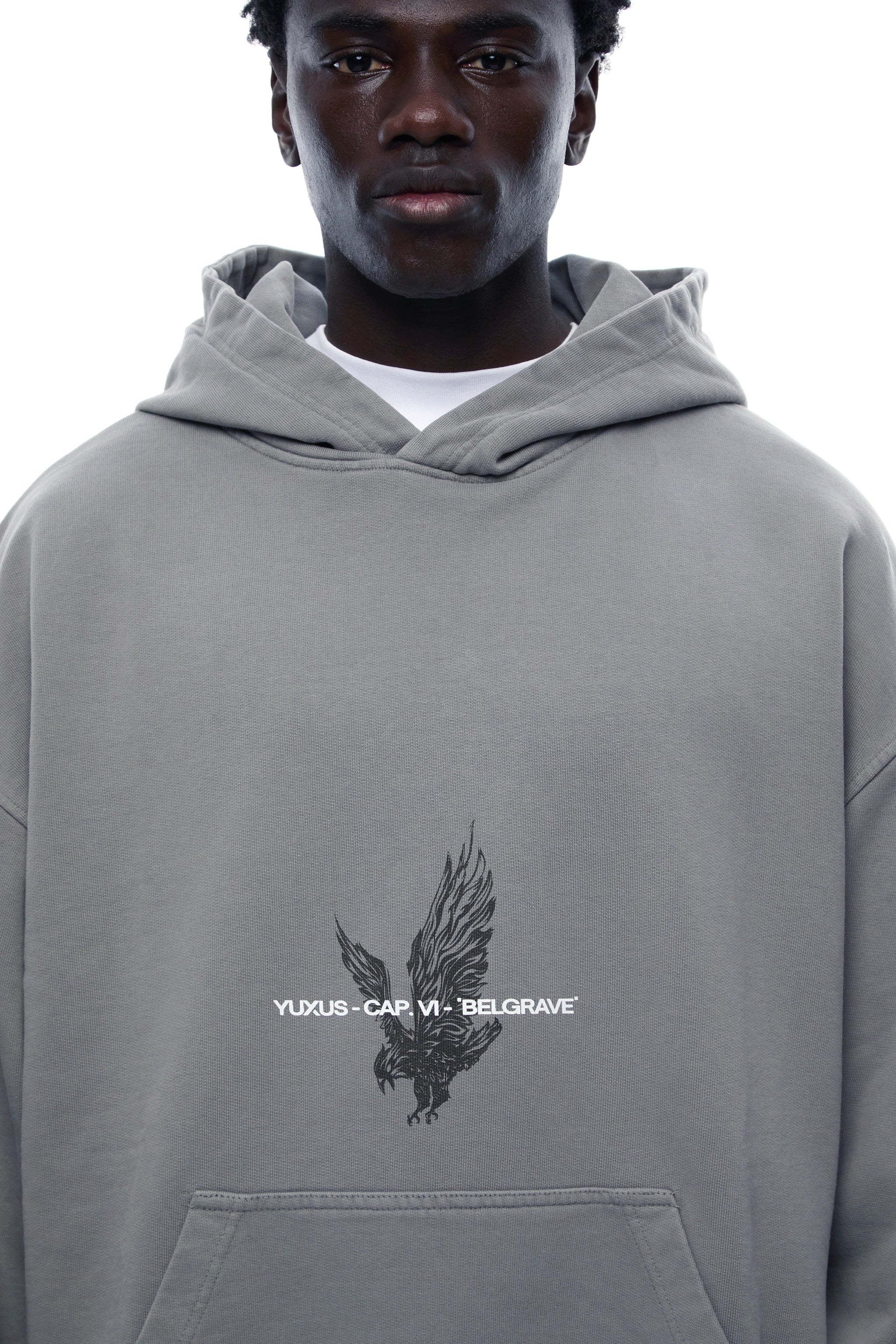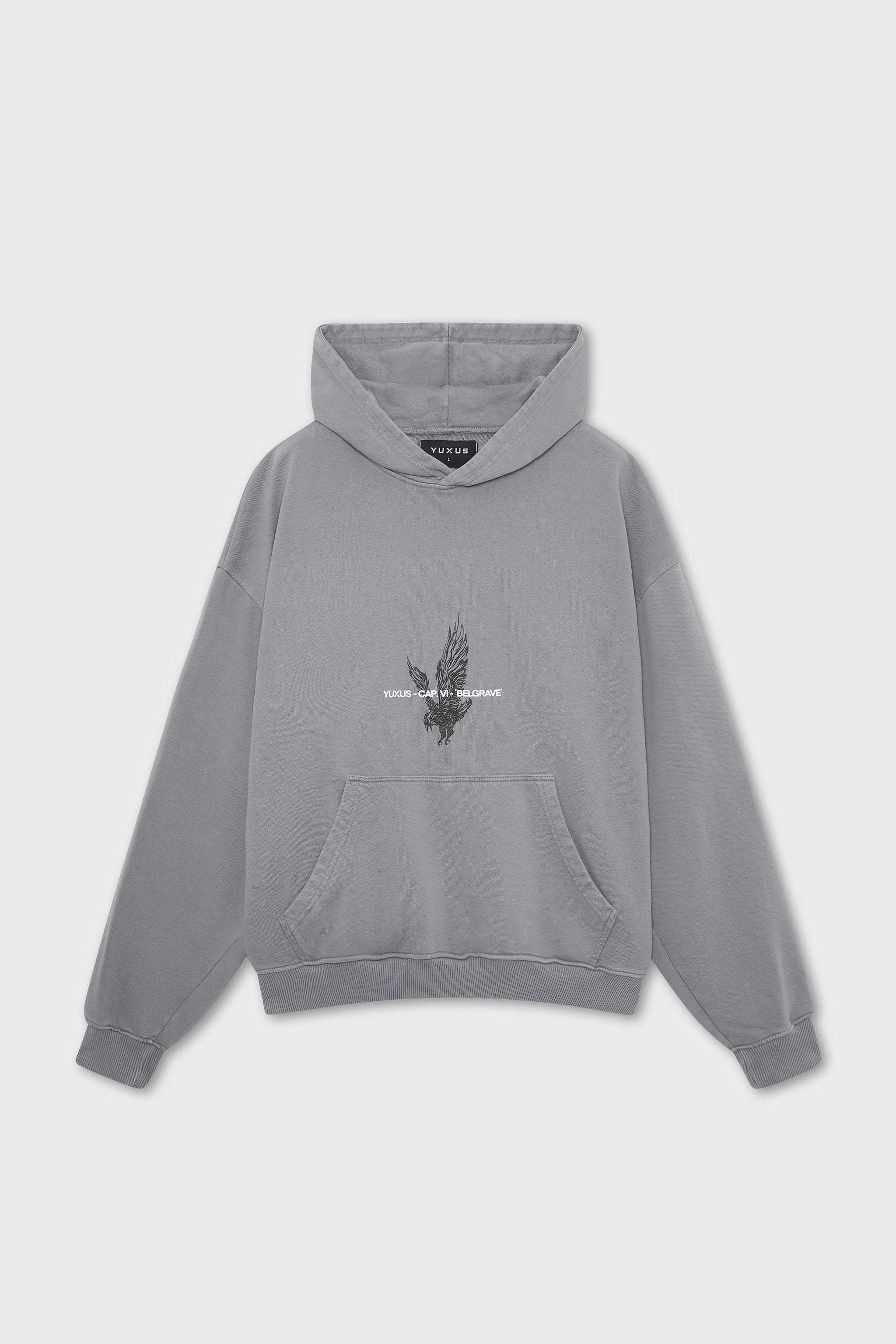 Ultra-heavyweight regular fit hoodie in nightshade gray colour. Designed in London & created in Madrid for our Capsule VI: "Belgrave".
