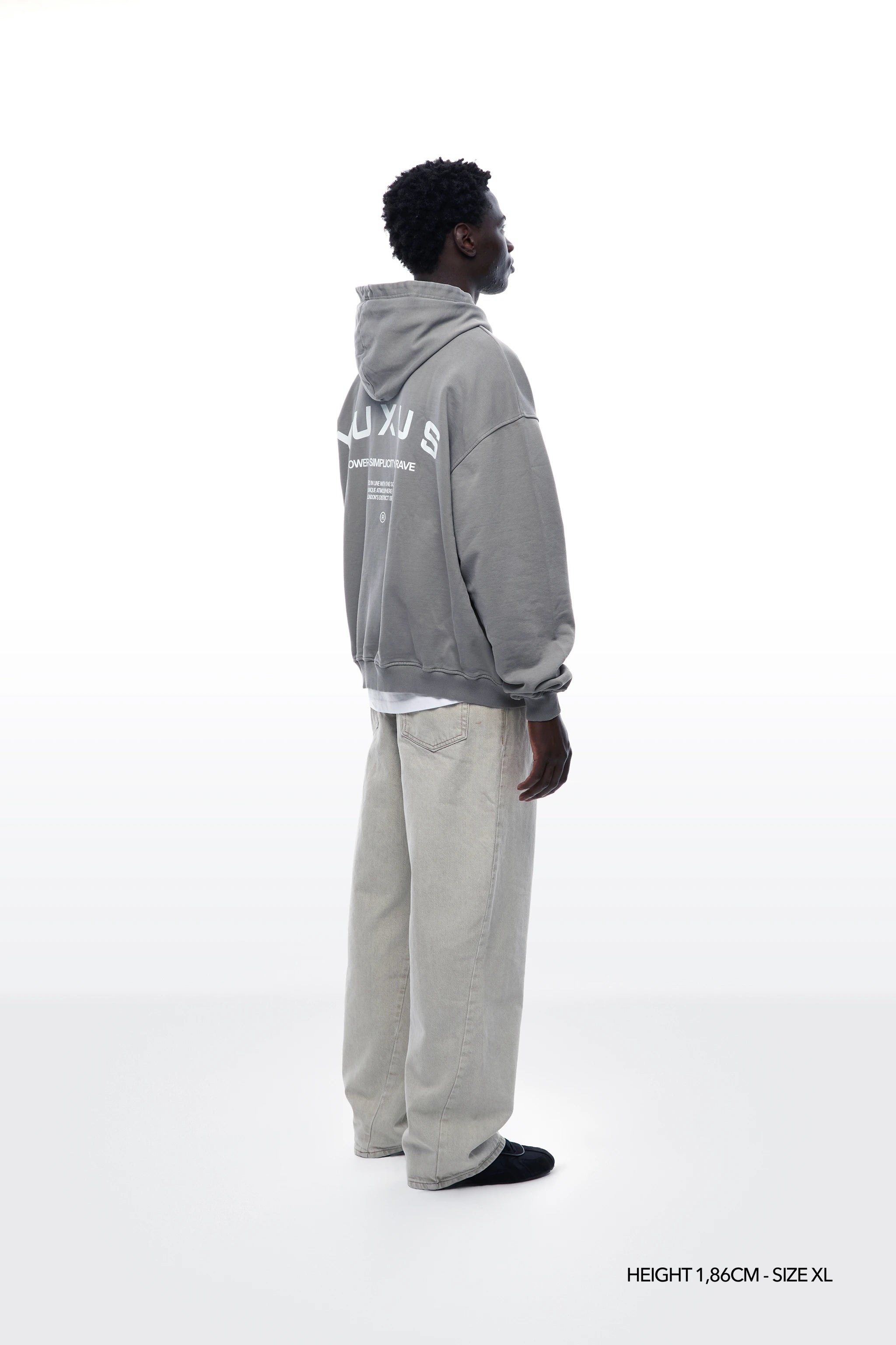 Made out of 100% cotton, 450gsm. Washed-effect & dropped shoulder. Serigraphy on the front part and on the back. Kangaroo pocket on front.