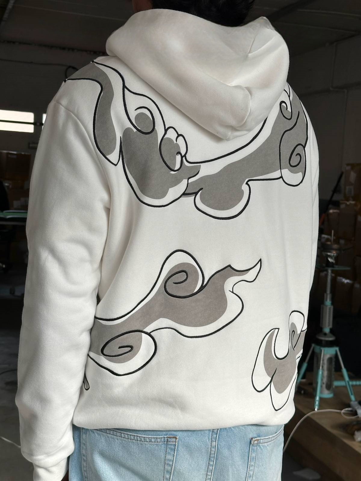 This is a Cloud Hoodie with patterns and motifs from Eichiro Oda's One Piece.