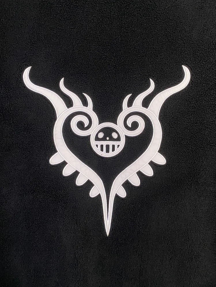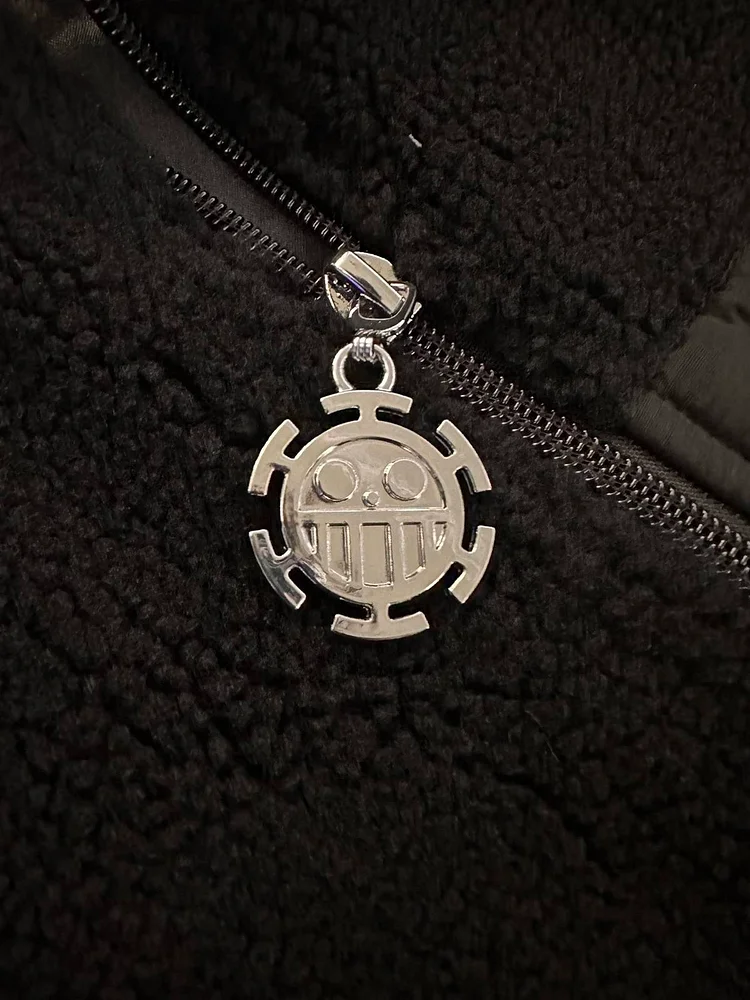 This is a reversible sherpa jacket with patterns and motifs from Eichiro Oda's One Piece.