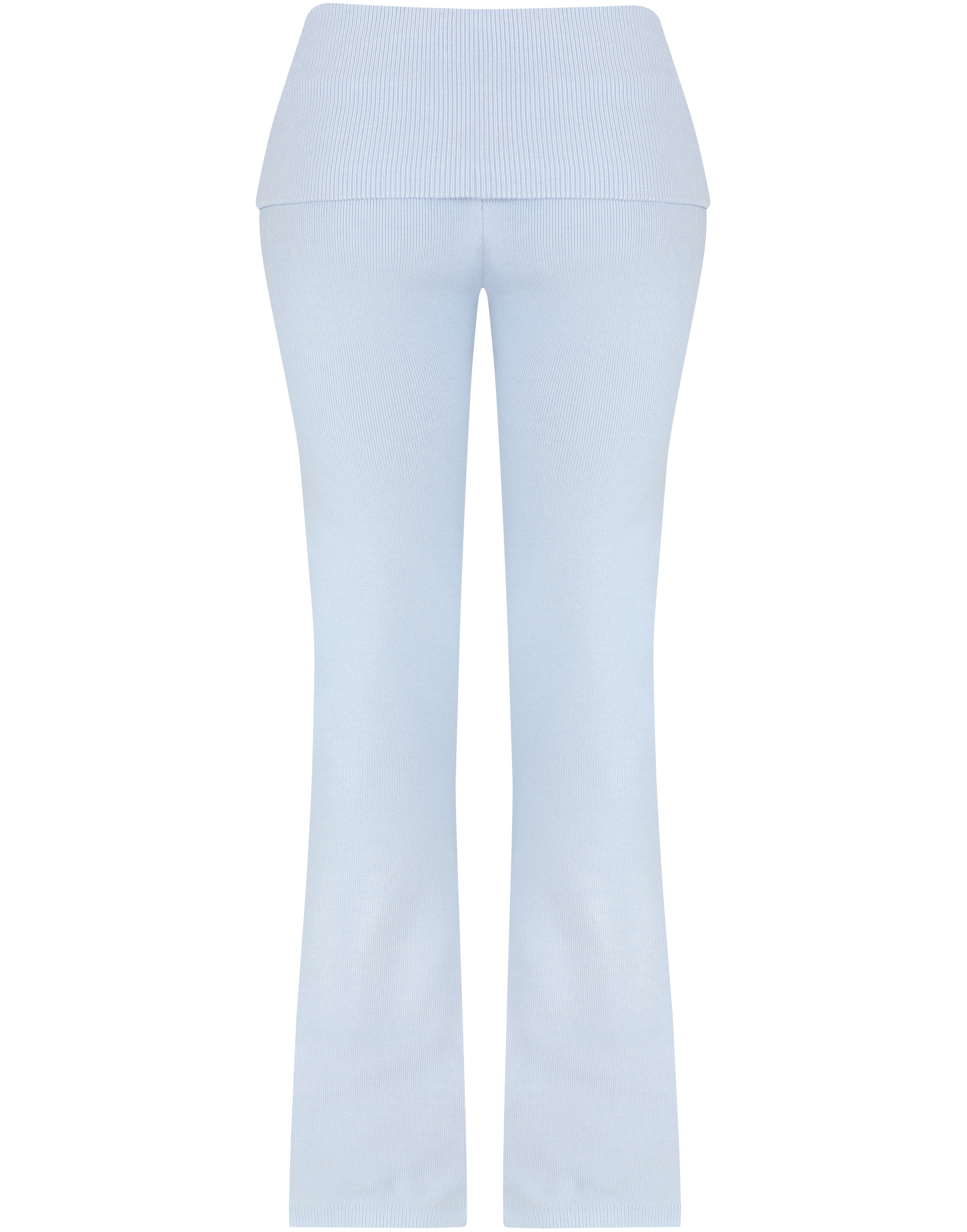 Original design by HIDDEN CULT®. Crafted from our signature buttery soft, body-hugging knit, these foldover pants are the latest addition to our soft knit collection. Designed in Pearl, a limited-edition shade of gentle baby blue, and made with a flattering flared silhouette and foldover detail. Finished with a new custom-made removable logo pin you can style your way. So comfortable and flattering, you’ll never want to take these off.