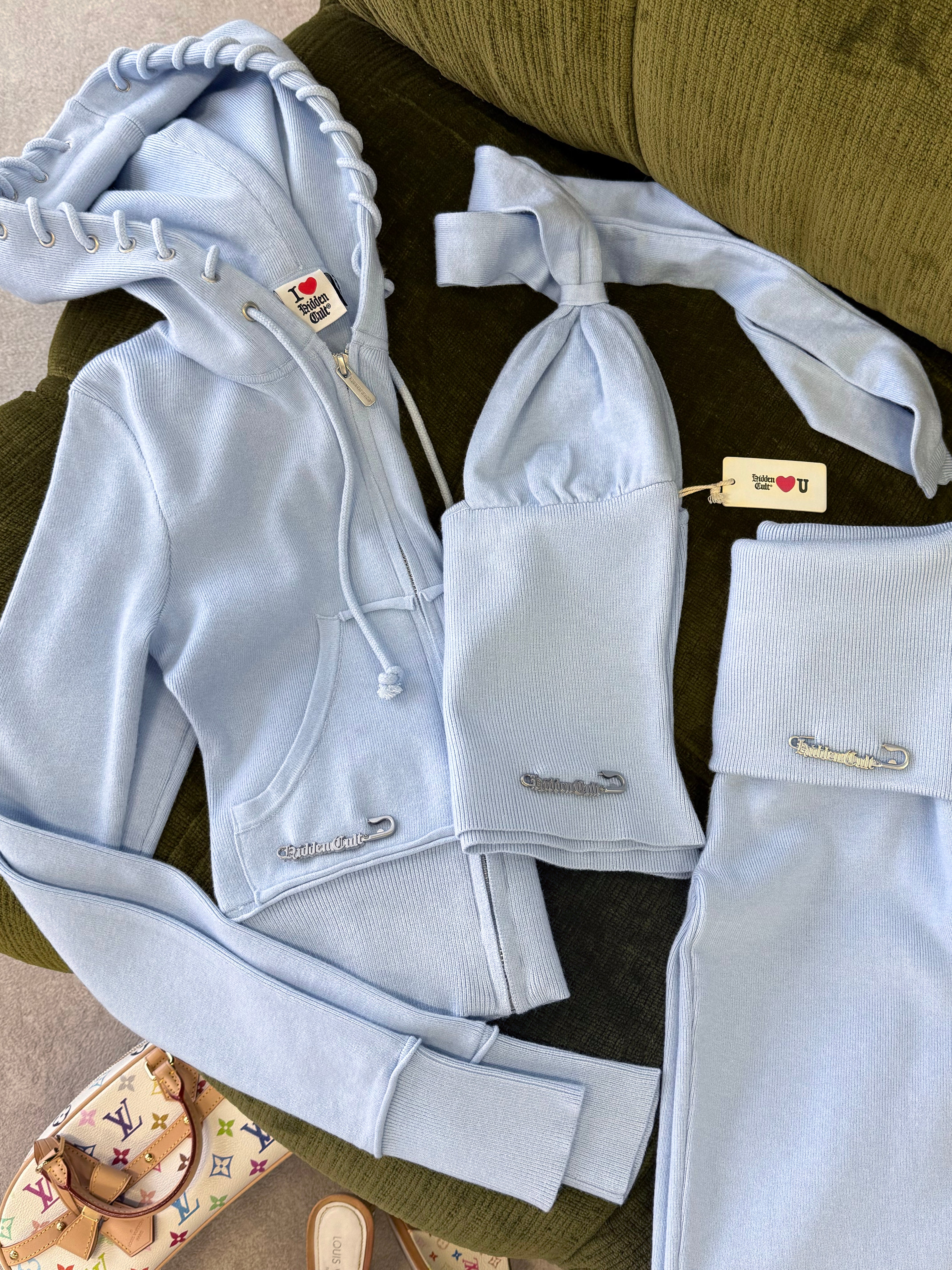 Original design by HIDDEN CULT®. Crafted from our signature buttery soft, body-hugging knit, this halter top is the newest addition to our soft knit collection. Designed in Pearl, a limited-edition shade of soft baby blue, it features a sculpting fit that’s ultra-stretchy and flattering. Finished with double-layered cups, adjustable halter tie straps, and a removable logo pin. Complete the look with the matching foldover soft knit pants for a feminine, sculpted fit that’s just as comfortable as it is cute.