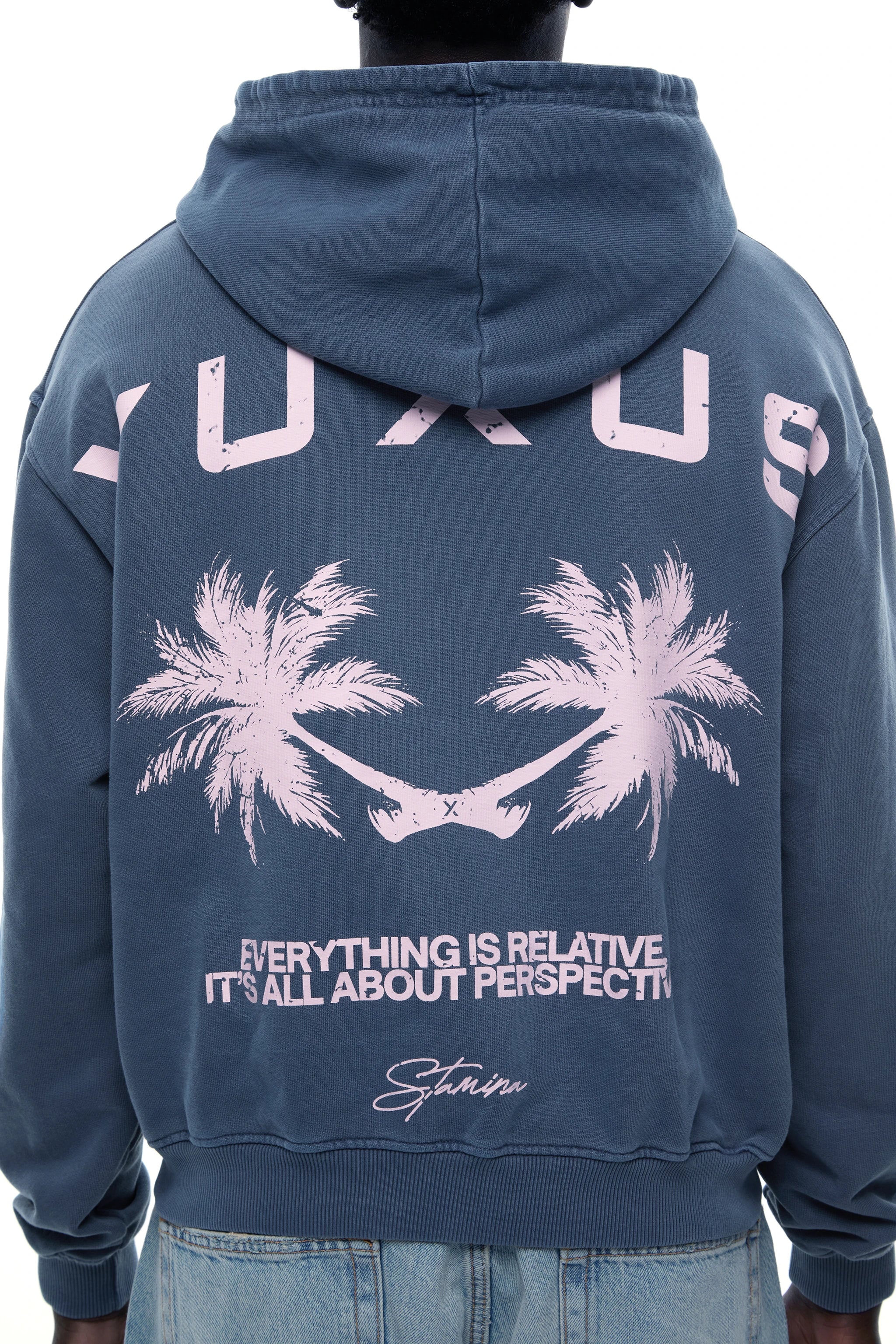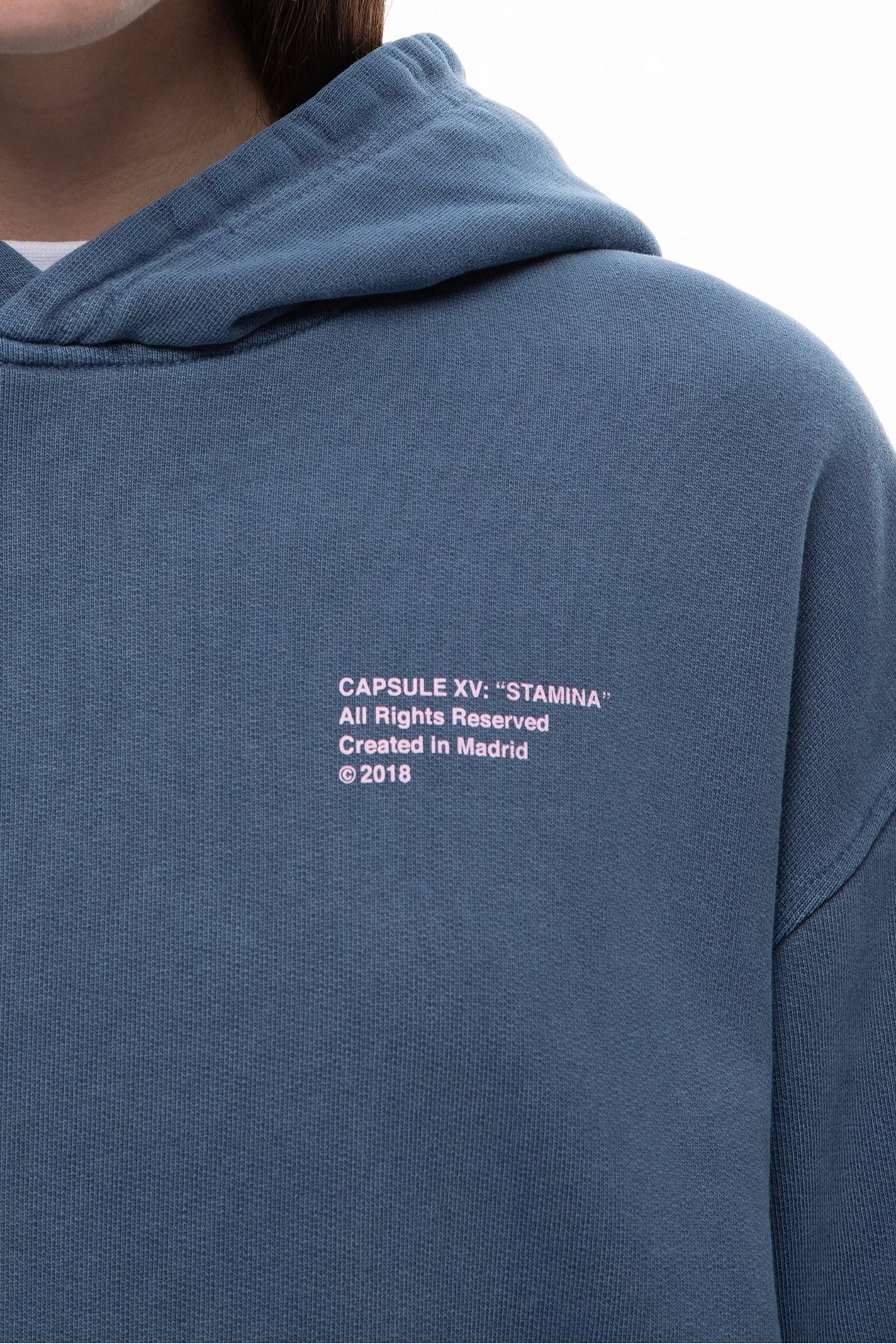 Introducing the Stamina hoodie in pyro blue color, a clean and refreshing take to represent the spirit of a permanent vacation. The capsule embodies the summer season with relaxed fits, light textured fabrics and hues of antique whites, royal blues and pastel tones reminiscent of a summer sunset.
