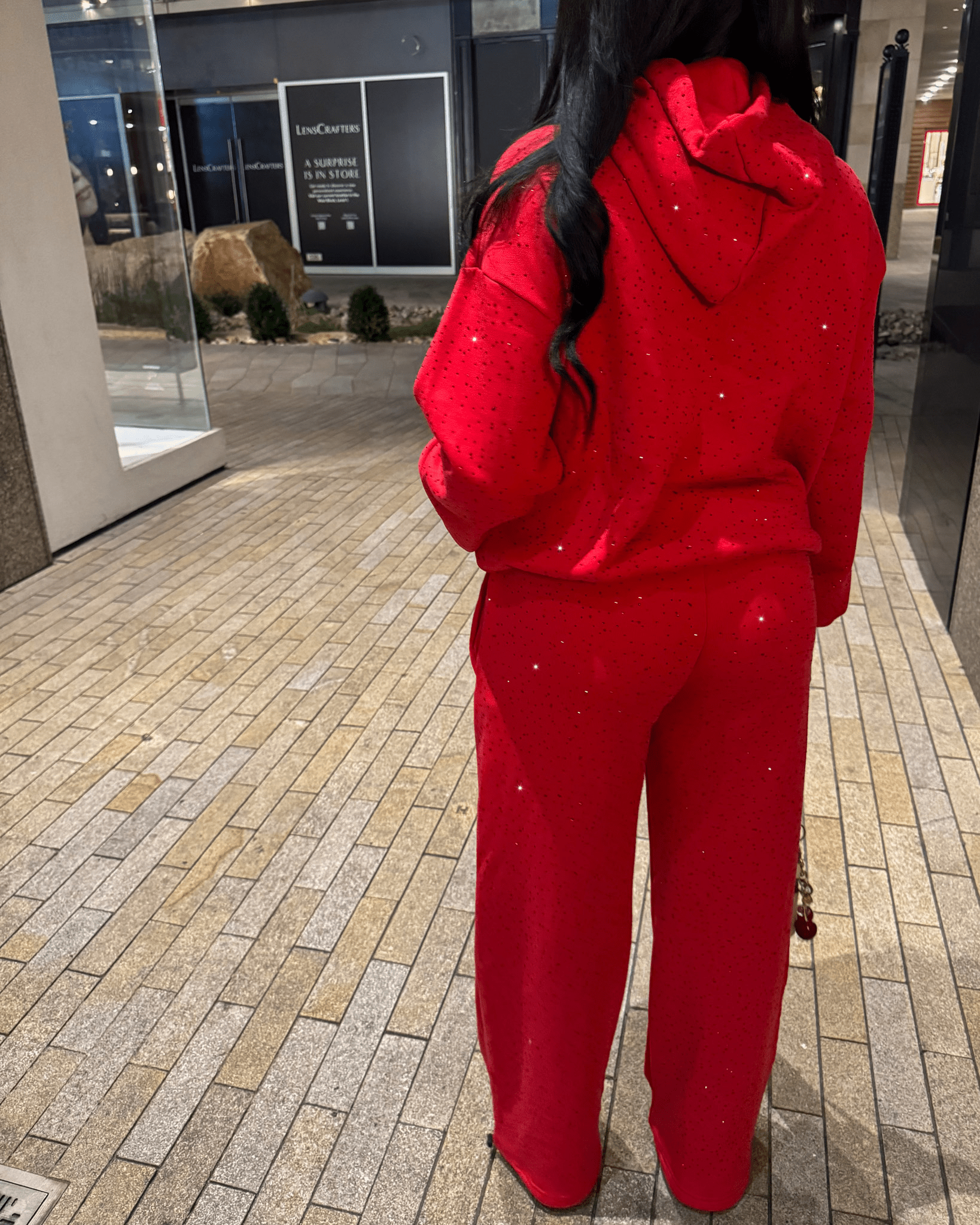 Experience the Shiny Elegance of Our New Comfy and Heavyweight Rhinestone Tracksuit. This is a perfect Standout piece for your wardrobe, for all type of occasions.