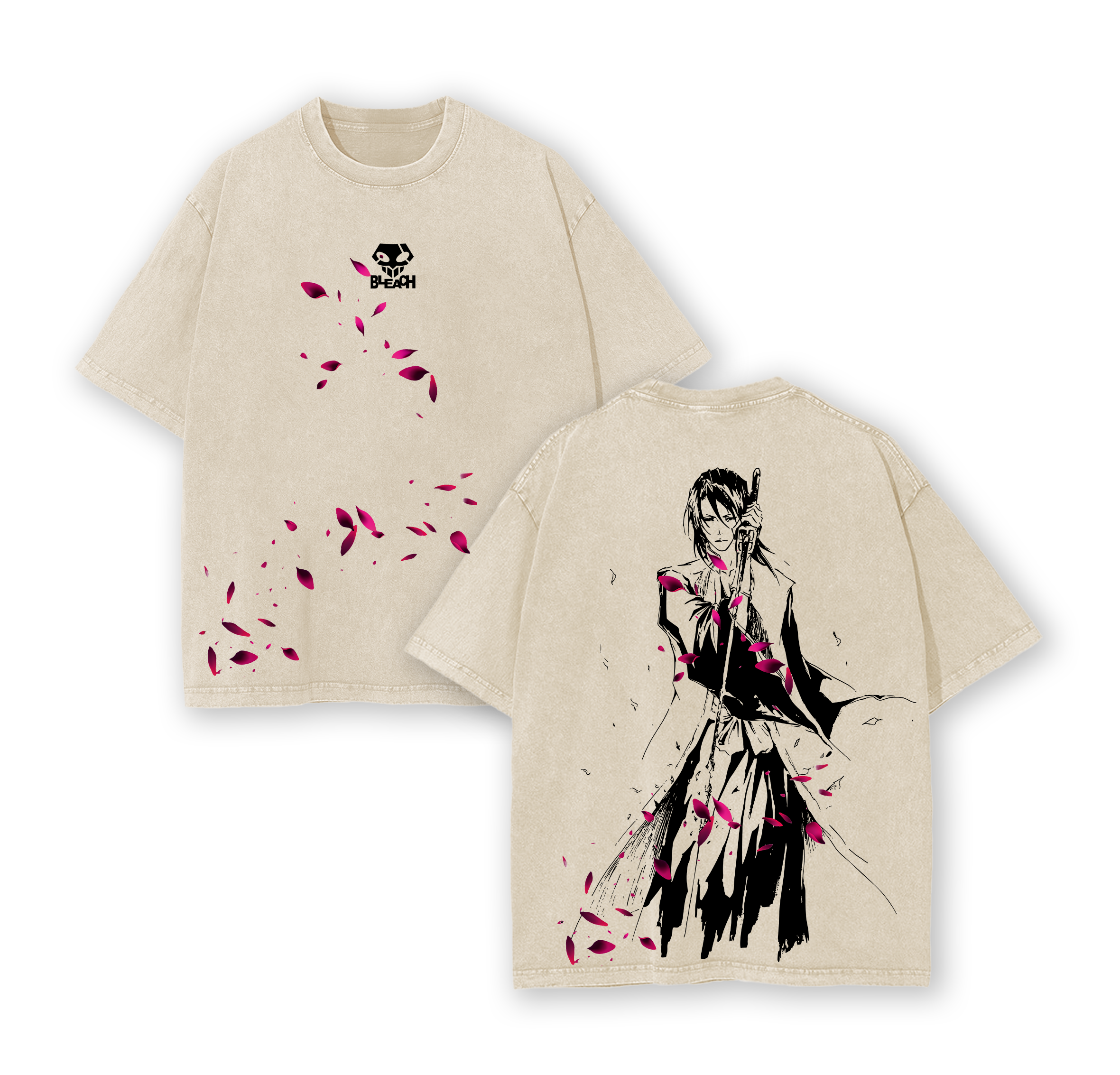 Byakuya Kuchiki Bleach Anime Double Printed Vintage Washed Tee