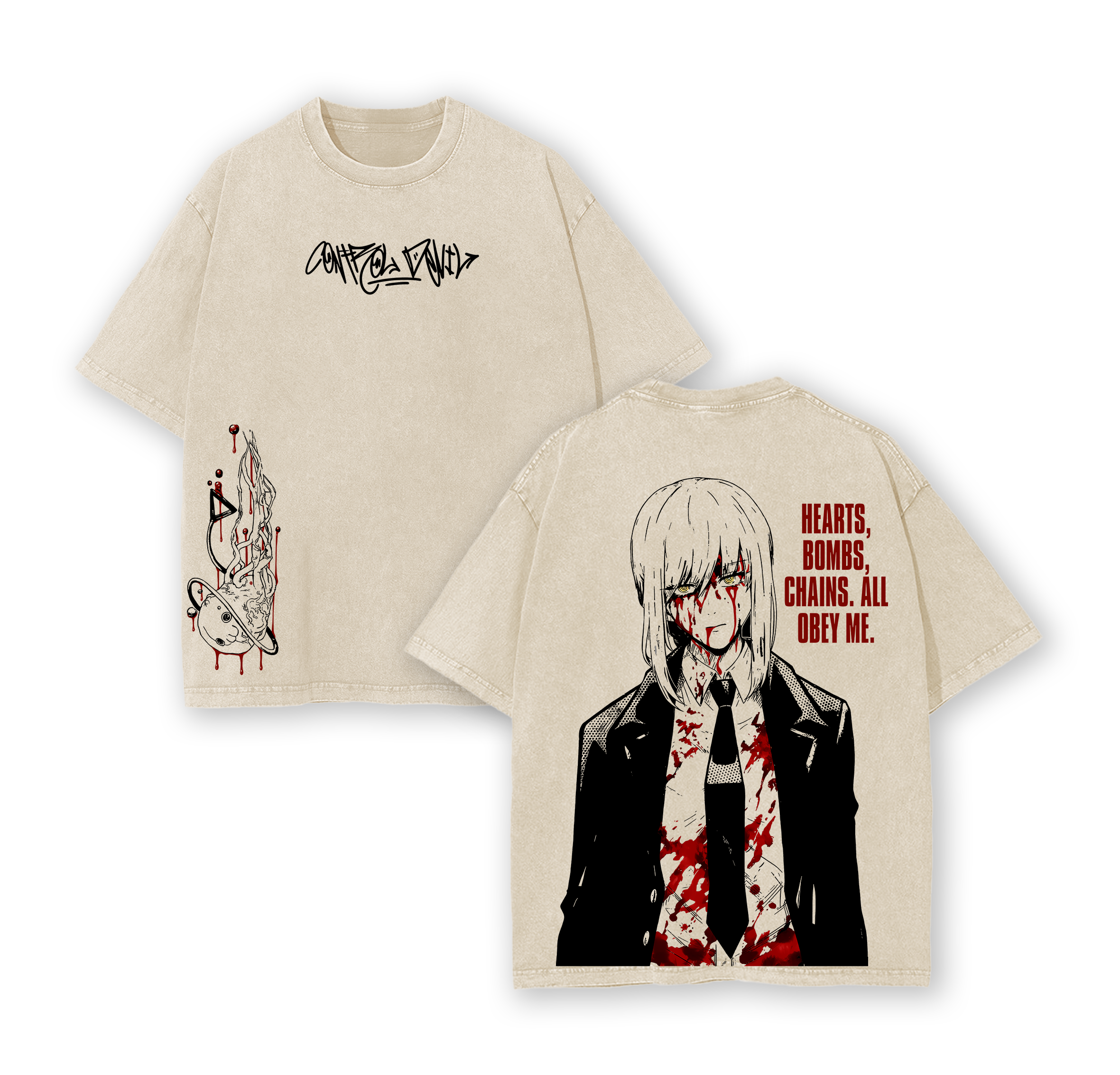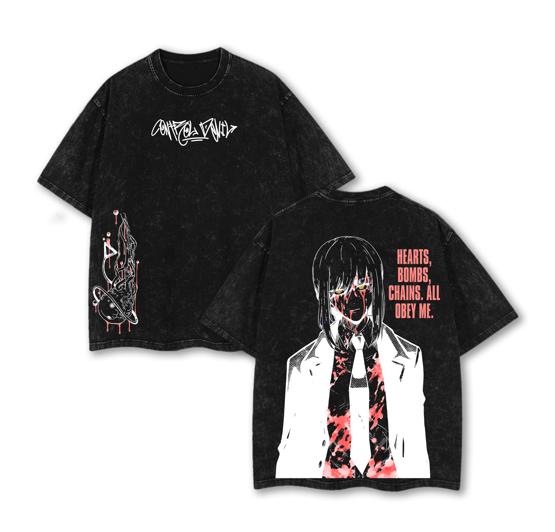 Makima Chainsaw Man Tee Washed – Pochita’s Heart & Denji’s Heart