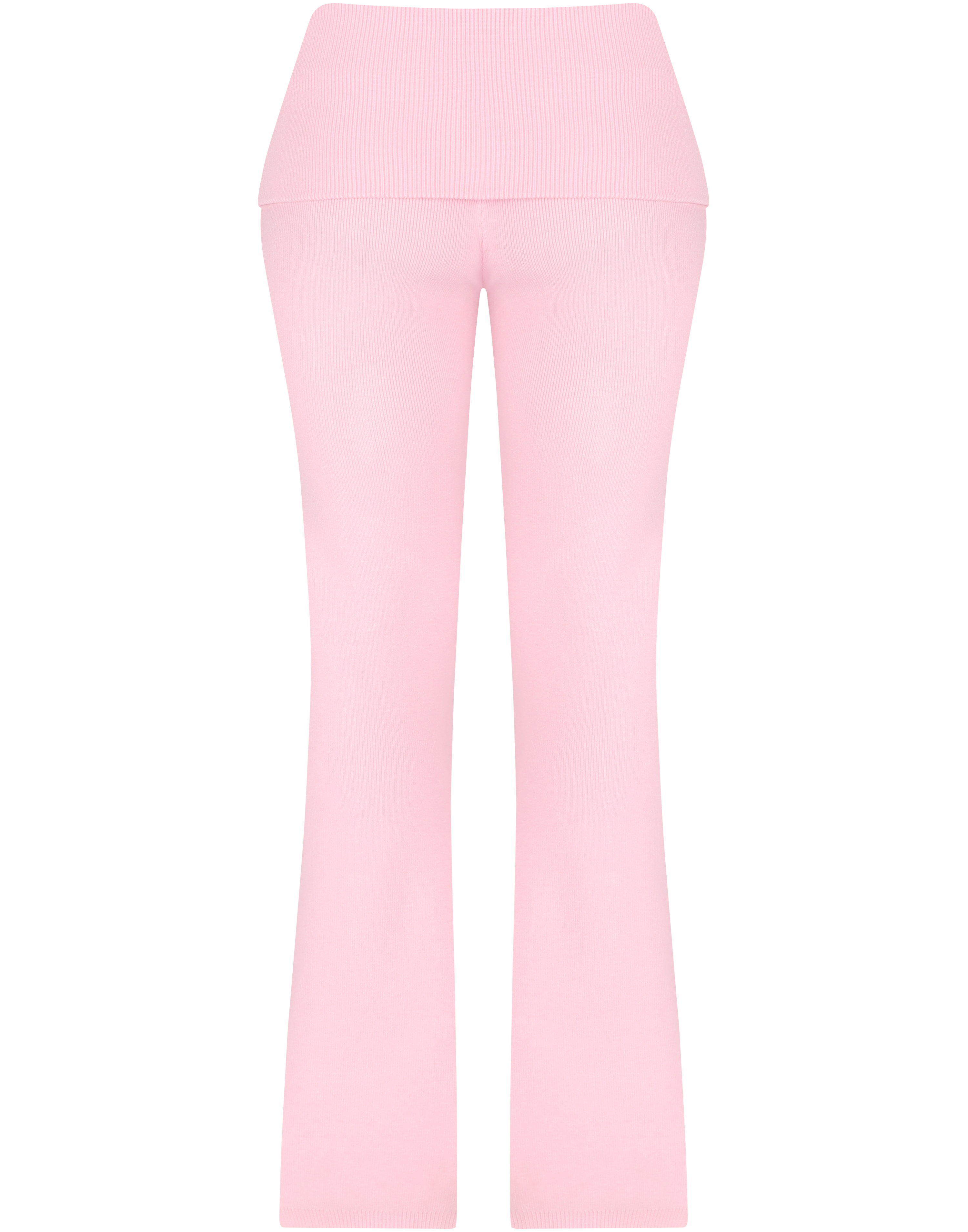 Original design by HIDDEN CULT®. Crafted from our signature buttery soft, body-hugging knit, these foldover pants are the latest addition to our soft knit collection. Designed in Sakura, a limited-edition shade of the perfect baby pink, and made with a flattering flared silhouette and foldover detail. Finished with a new custom-made removable logo pin you can style your way. So comfortable and flattering, you’ll never want to take these off.