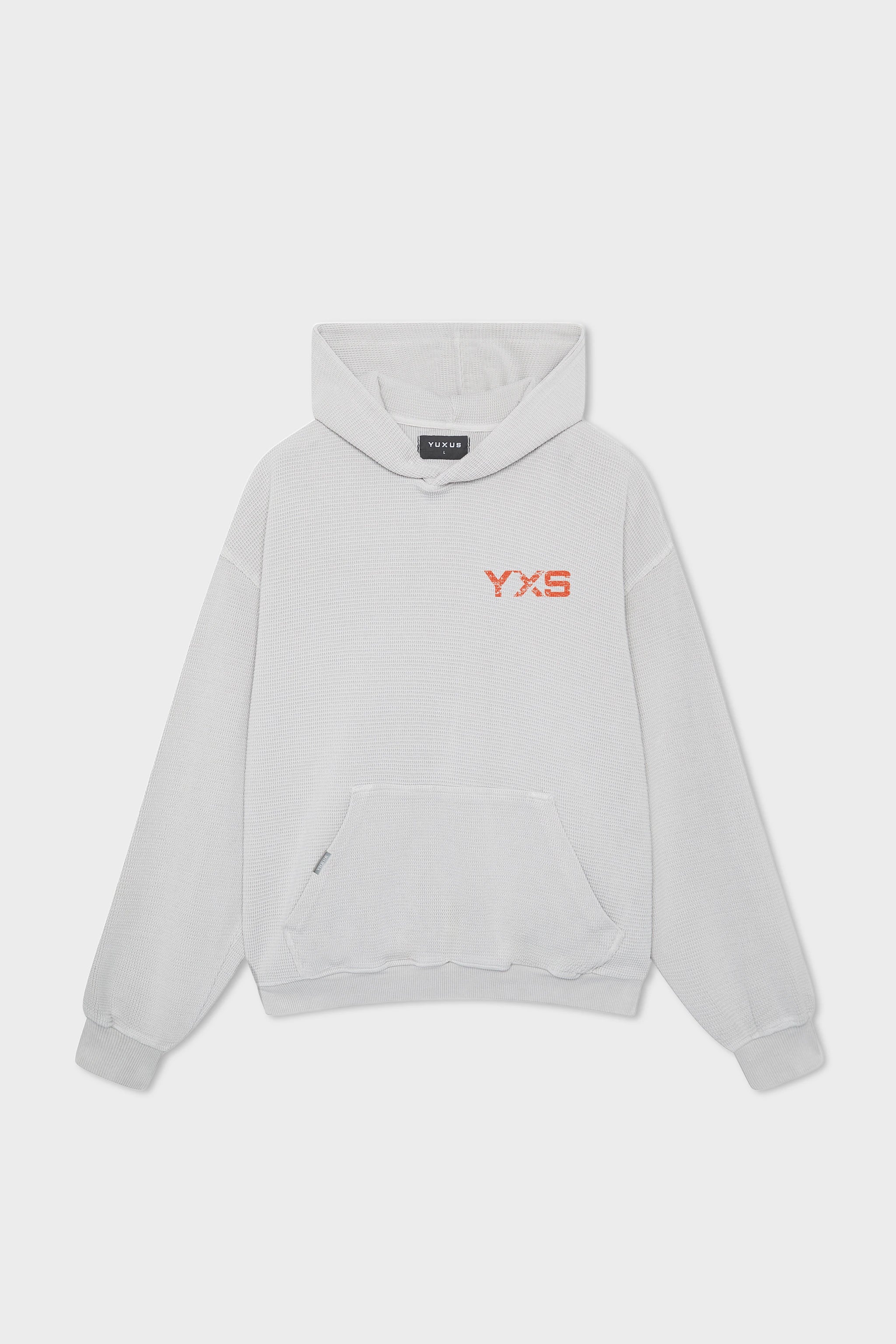 From the LE CLUB collection — introducing the waffle hoodie in grey, a refined expression of the Yuxus summer. Lightweight, thoughtful, and built with intention. Where texture meets ease, and detail speaks softly.