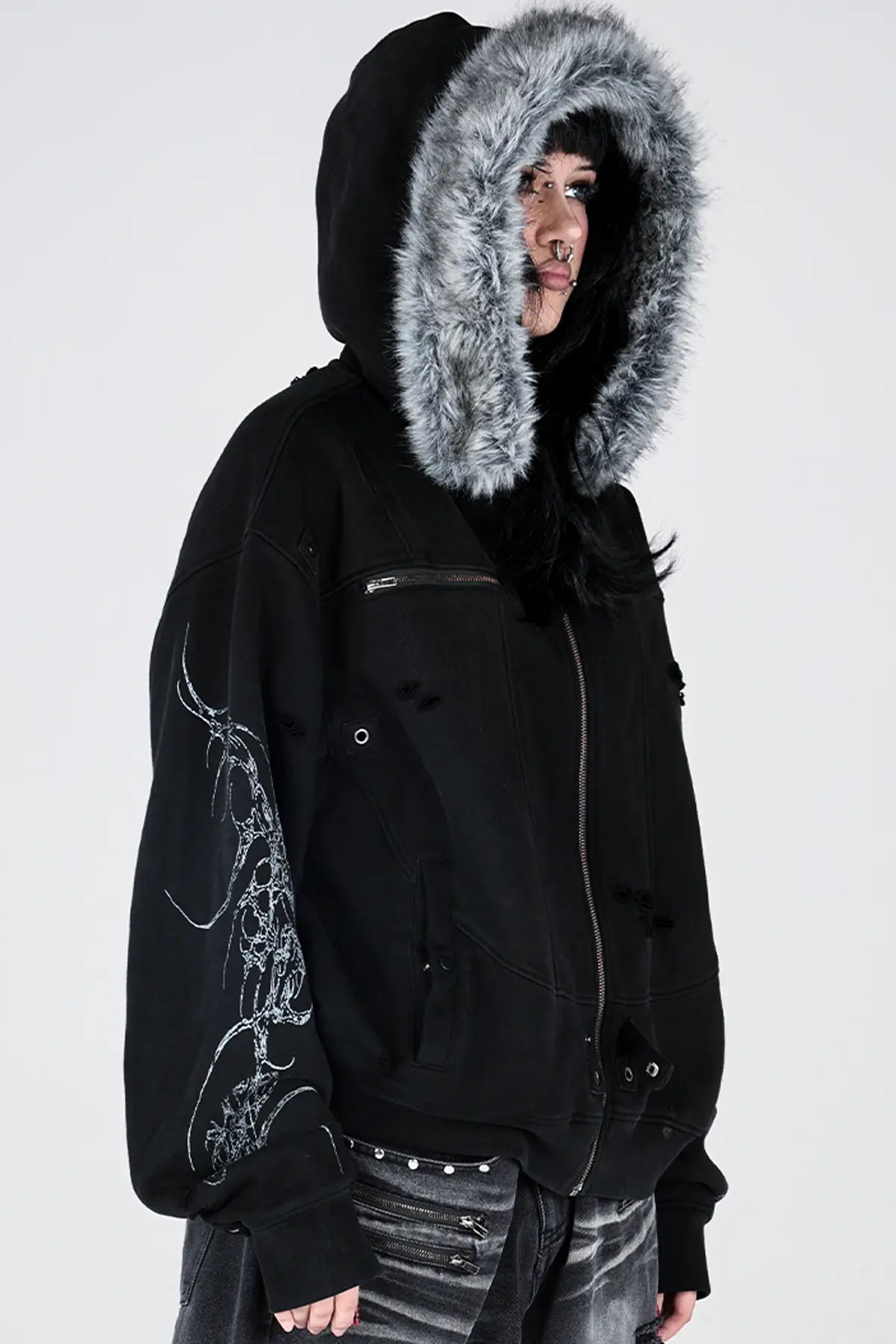 This heavyweight cotton zip-up is made for comfort and durability, with a soft feel that lasts. It features a relaxed fit and detailed screen print built to handle life’s toughest moments. Simple, reliable, and made to help you express your true self, no matter what.e