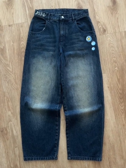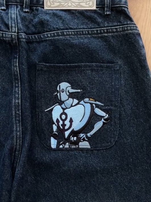 Baggy fit jeans.