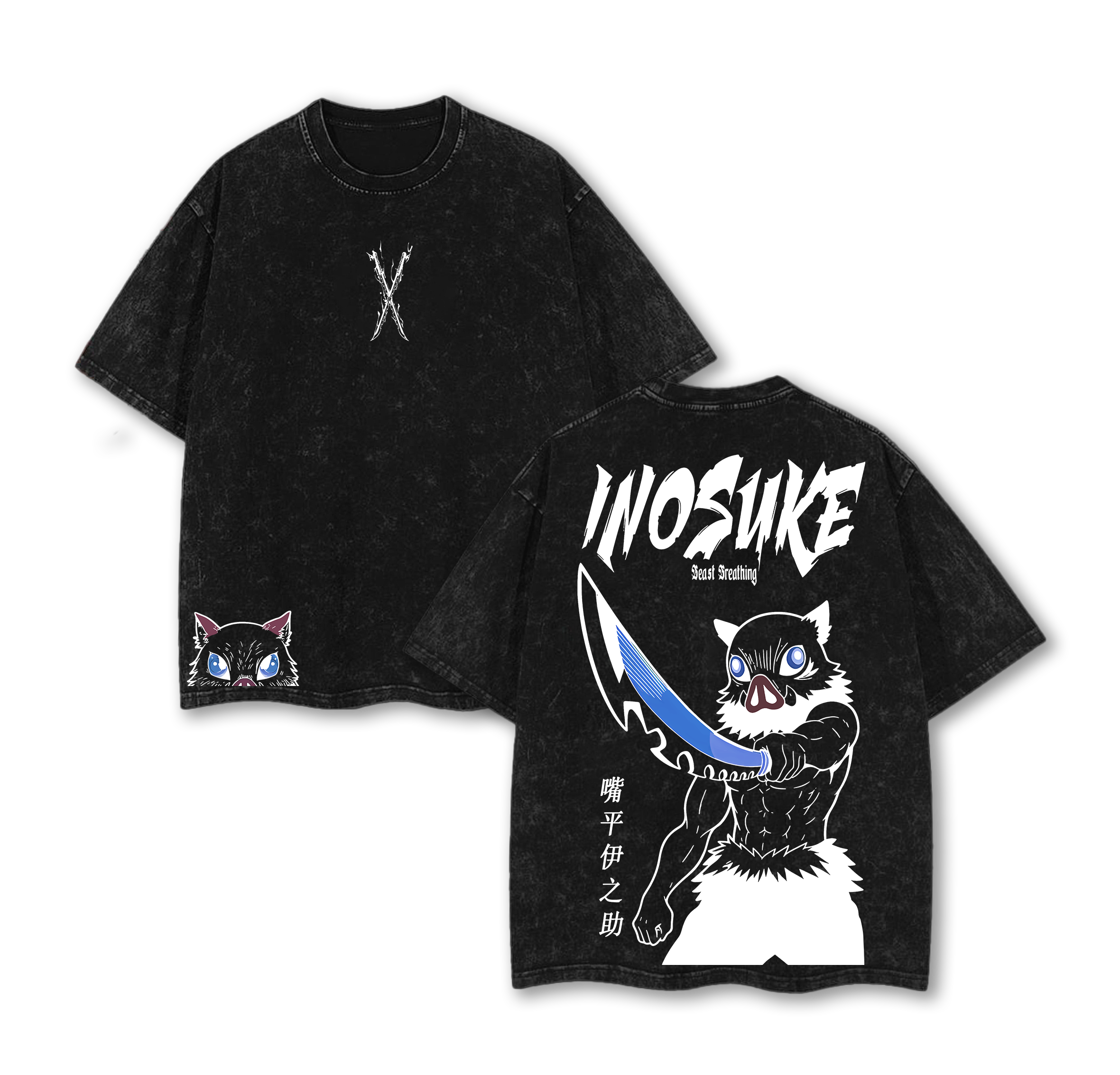 Retro Vintage Inosuke Hashibira V2 - Demon Slayer Anime Double Printed Vintage Washed Tee