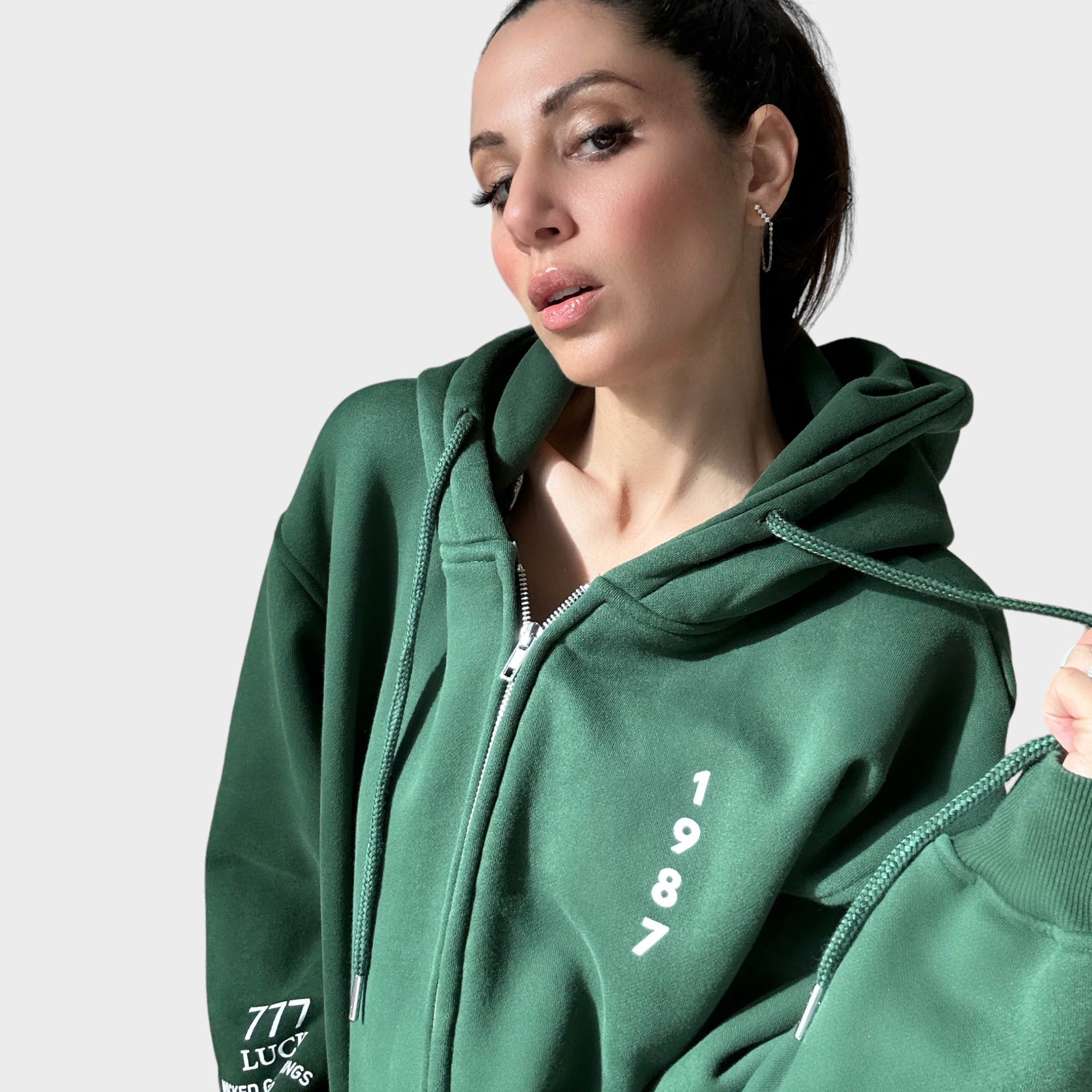 Our 777 zip up is all about luck. If you're into angel numbers you'd know that 777 means good luck is just around the corner. Or as TikTok would say "lucky girl syndrome" -- if you think you're lucky you will in fact be lucky.