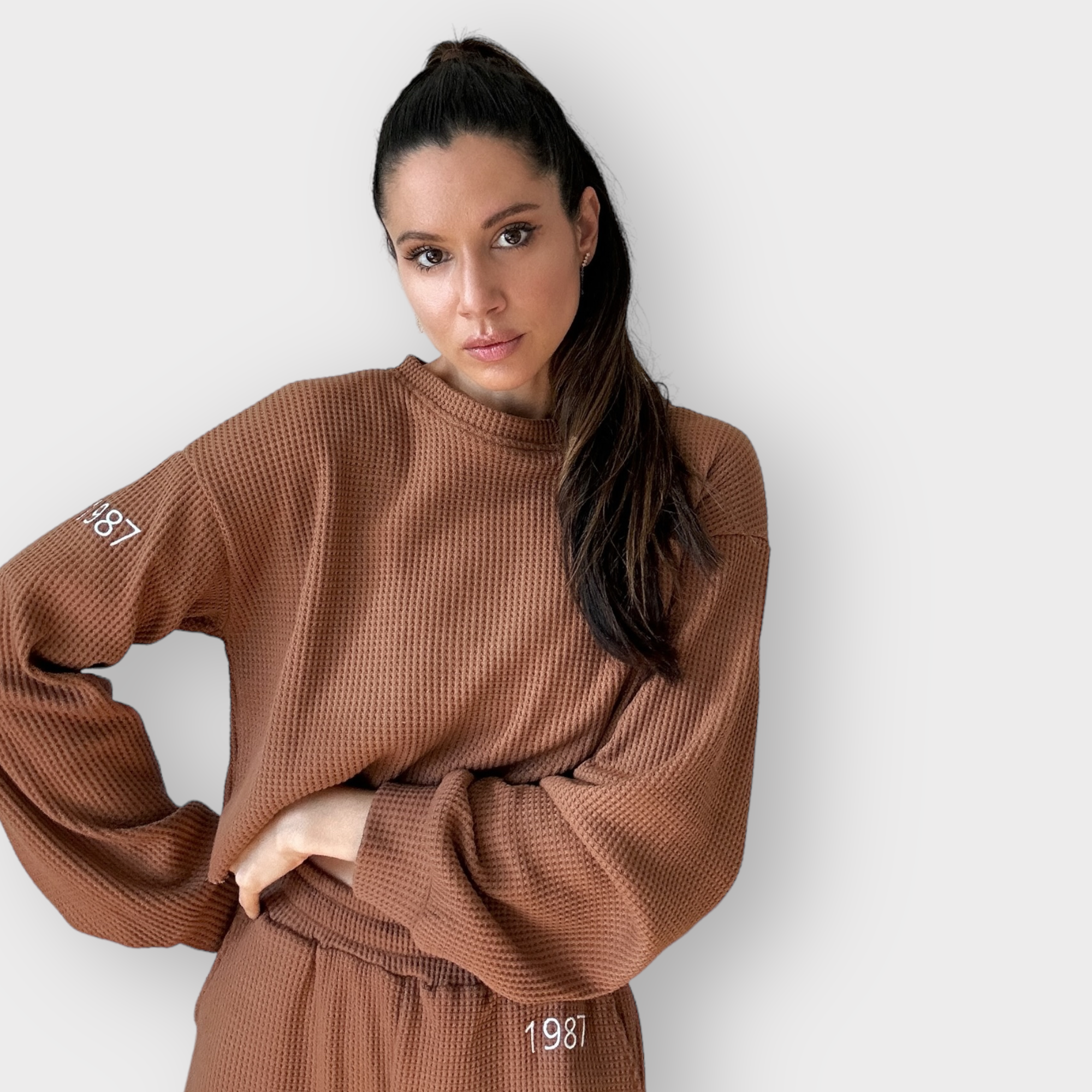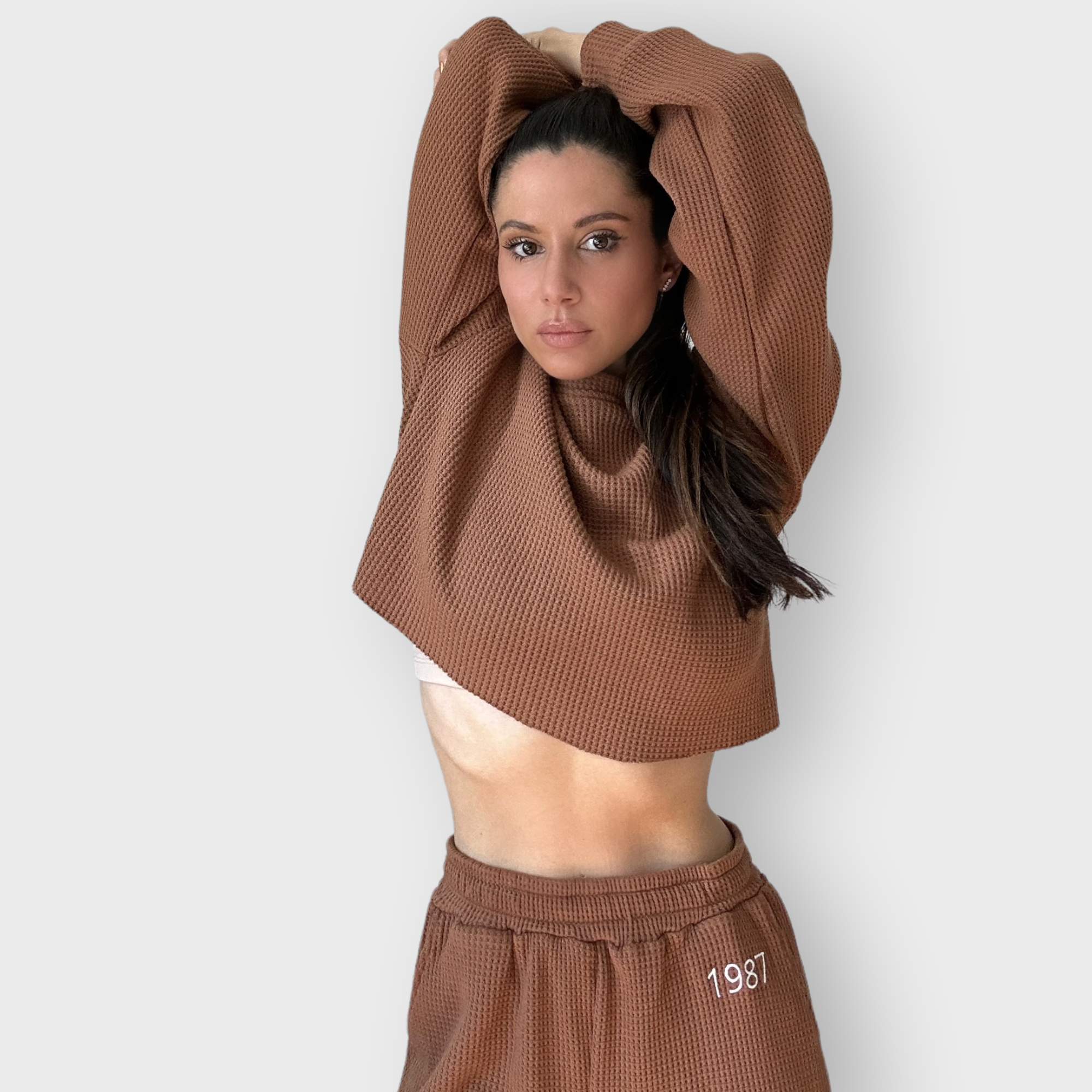 The West End Waffle crop is so comfy, so flattering, so fall. Pair this with jeans or our West End Waffle pant for a look that is super fashion forward.