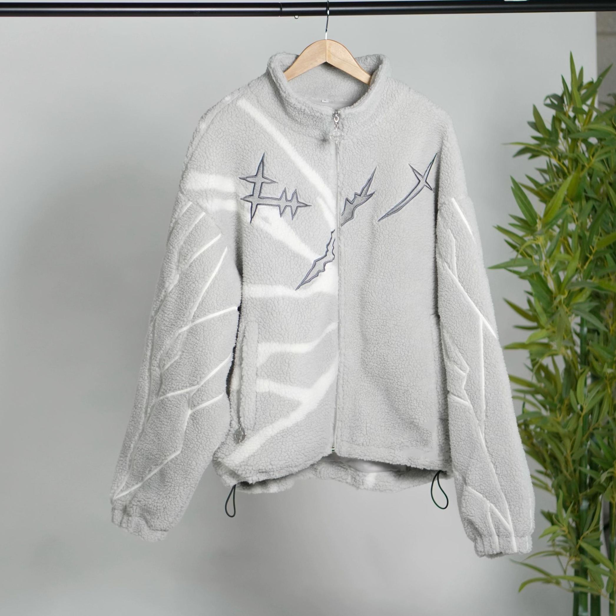There are white weaved patterns throughout this jacket’s fabric making everything seamless. On the front right side we have a white edge to edge design of his power when he cracks air itself. On the chest we have embroidery of his three scars.