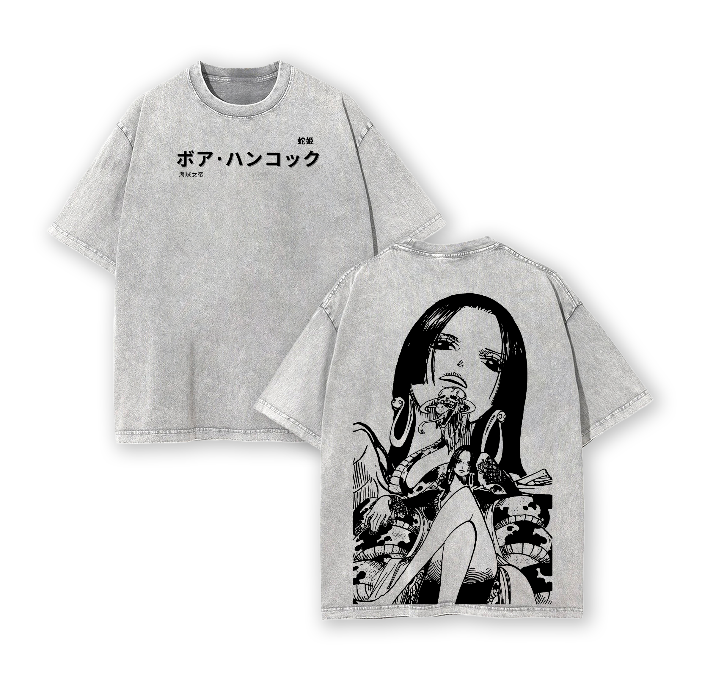 Boa Hancock One Piece Anime Double Printed Vintage Washed Tee Unisex Oversize Heavyweight Cotton T-shirt for Anime Fans and Lovers
