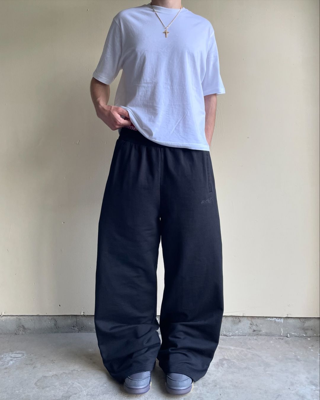 ?BAGGY WIDE LEG FIT?100% HEAVYWEIGHT FRENCH TERRY COTTON?MONOCHROME EMBROIDERY?DRAWSTRINGS INSIDE WAISTBAND?WASH COLD, HANG DRY