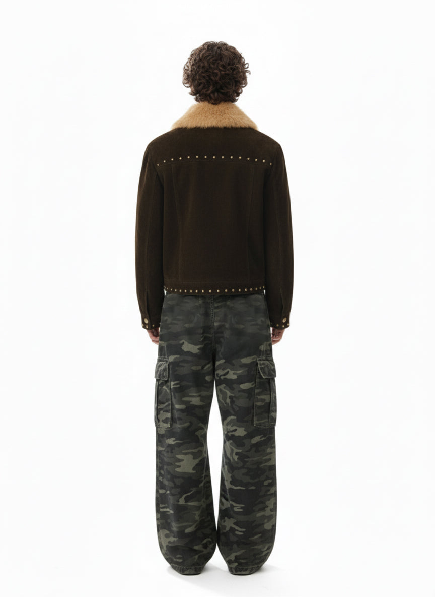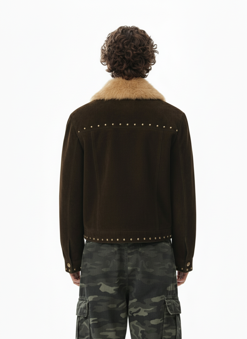 • Design Elements: Faux fur collar, decorative rivets, front zipper closure