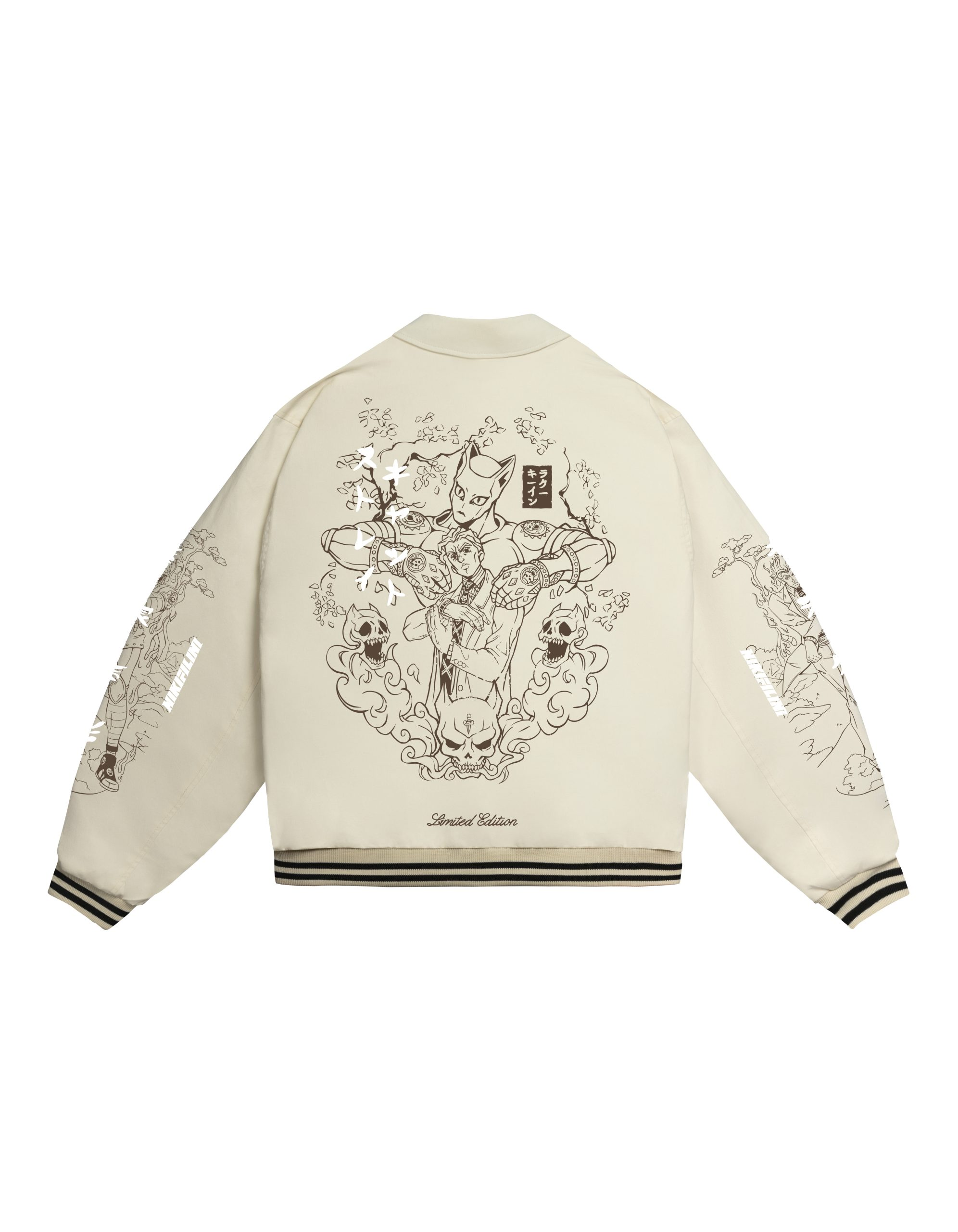 • A light bomber jacket made of denim fabric of a classic silhouette with a turn-down collar, elastic knitted garters at the cuffs and along the hem. The bomber jacket is equipped with welt pockets on both sides. Fastens with branded buttons. The print is made with a film with a gold metallic effect.