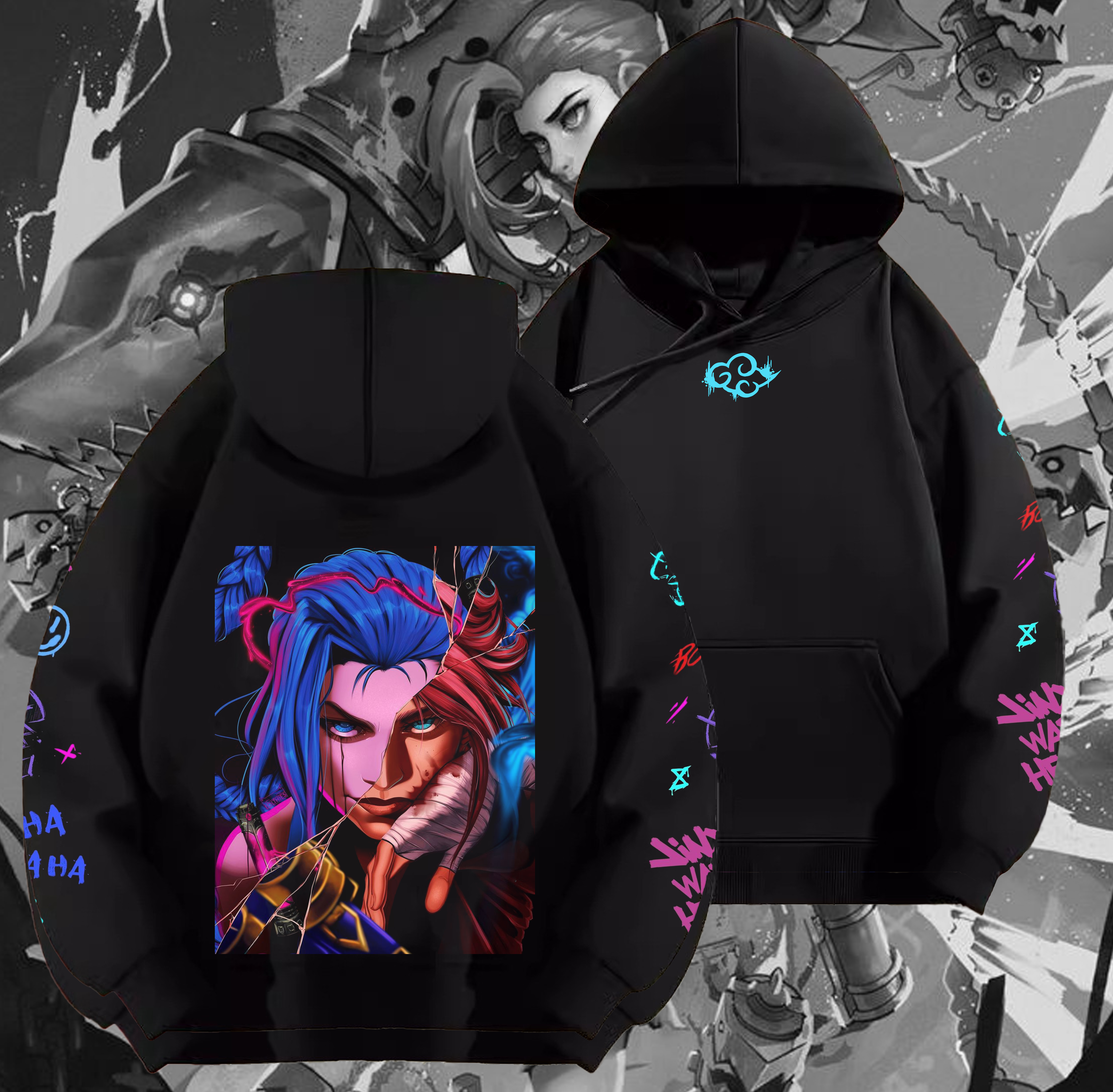 Arcane Jinx and Vi Print Hoodie