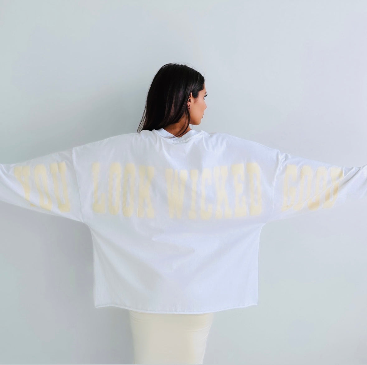 As a Boston based and Boston inspired brand, we had to come out with a very Boston saying. “You look wicked good” is our company tagline, one that graced the walls of our pop up in the Boston Seaport. Our community loved the saying so much it inspired its own crew. Our community then loved *that* so much they requested a long sleeve version with a lighter fabric. So here we are.