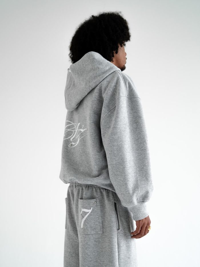 Black hoodie jacket with hood, pockets at the front and details with light dot.